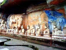 大足石刻 是大足縣境內(nèi)主要表現(xiàn)為摩崖造像的石窟藝術(shù)的總稱,位于四川省重慶市境內(nèi),以大足縣、潼南縣、銅梁縣、壁山縣為范圍,在此地可賞到代表中國(guó)唐、宋時(shí)期的石刻造像藝術(shù)。